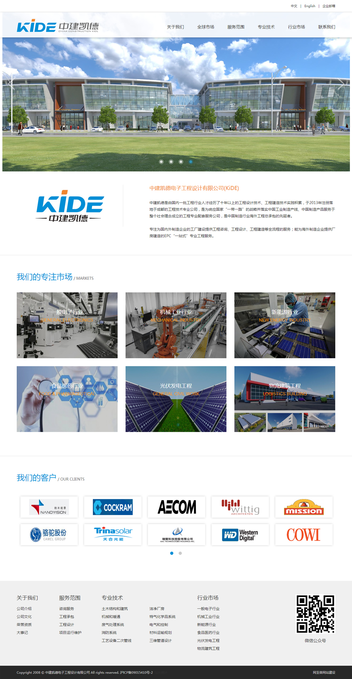 中建凱德電子工程設(shè)計有限公司(CHINA CONSTRUCTION KIDE ENGINEERING CORPORATION) 是一家以工程設(shè)計、咨詢、總承包、光伏集成建設(shè)為主的綜合性高科技設(shè)計工程企業(yè)。公司致力于EPC項目(Engineering Purchase Construction 設(shè)計采購施工一體化項目)的實施,為業(yè)主提供工程一站式的服務(wù)(Turnkey Project)。